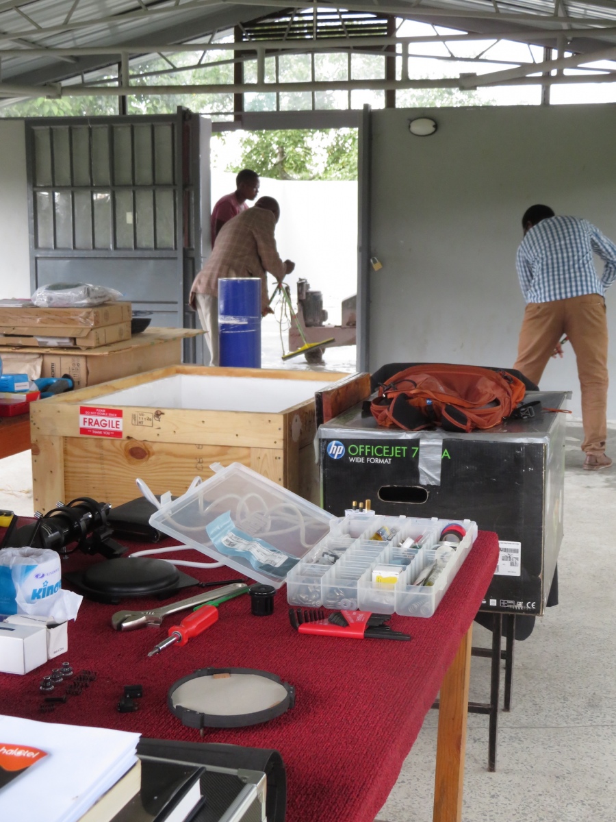 Yesterday was … challenging. We emptied the entire observatory, including removal of the telescope from the Dec arm to make way for the sanding and washing of the terrazzo floor. The original contractor failed to apply the correct seal, using wax instead of polyurethane or epoxy. Over the past three weeks, the wax has collected dirt to the point of being impossible to remove.